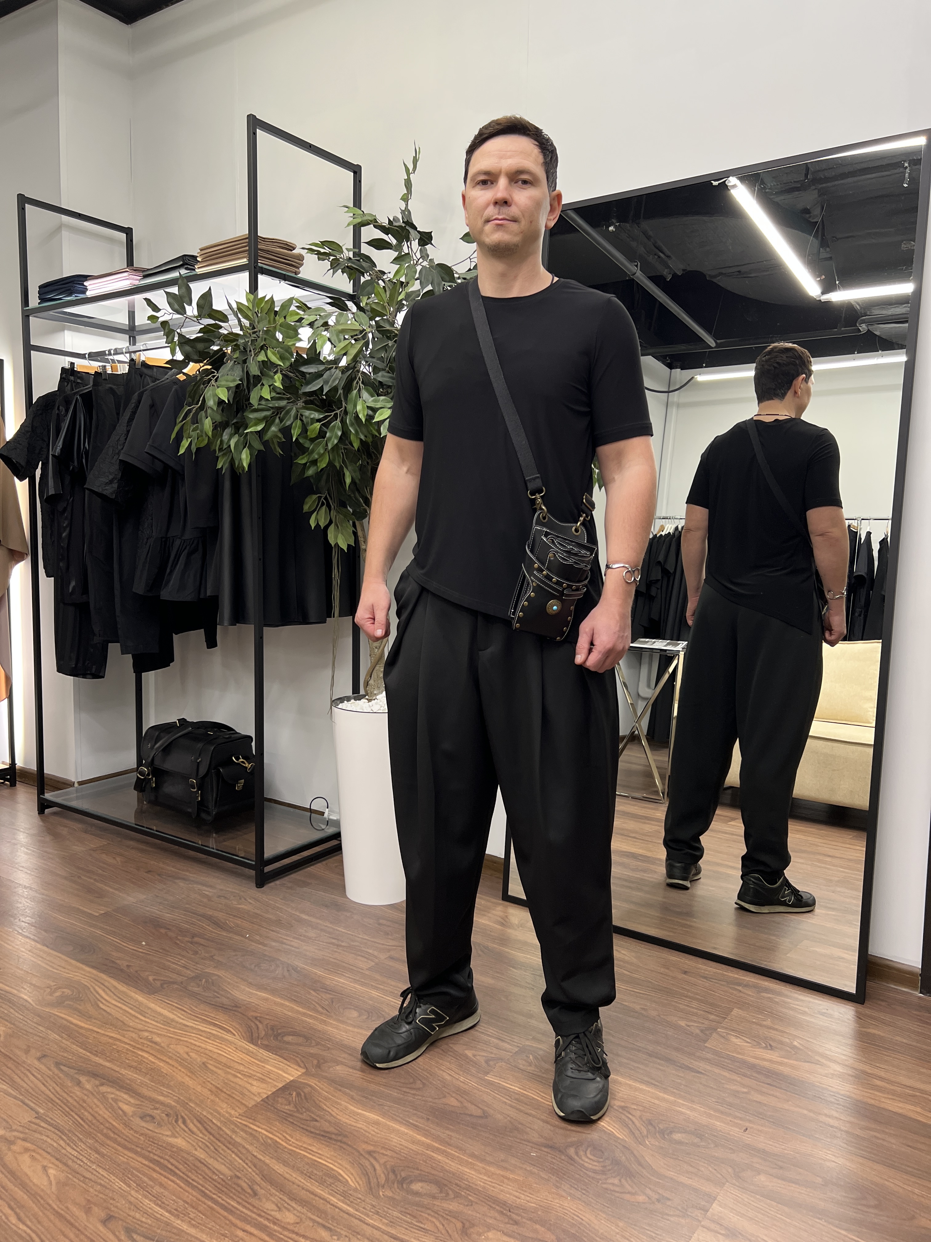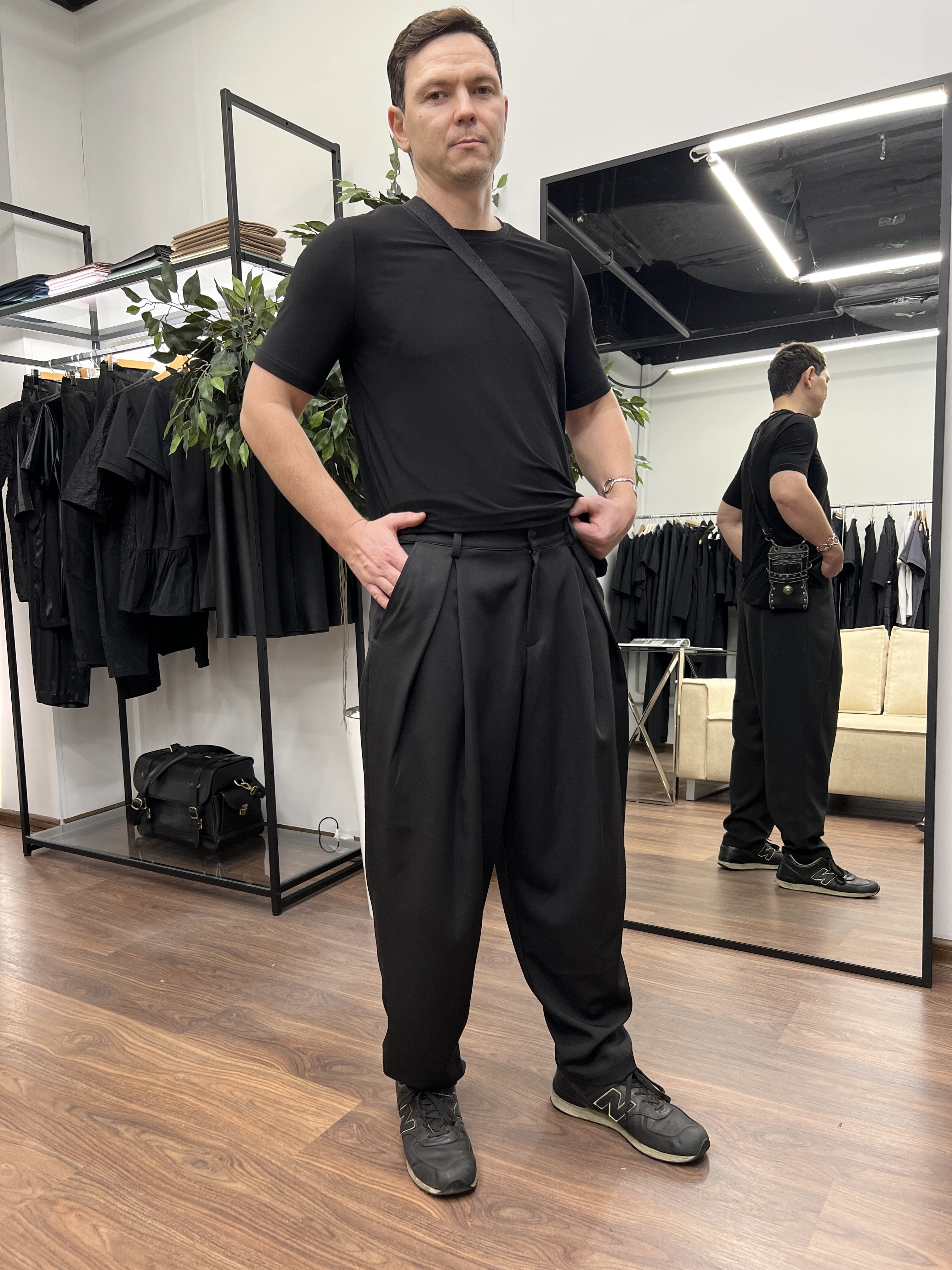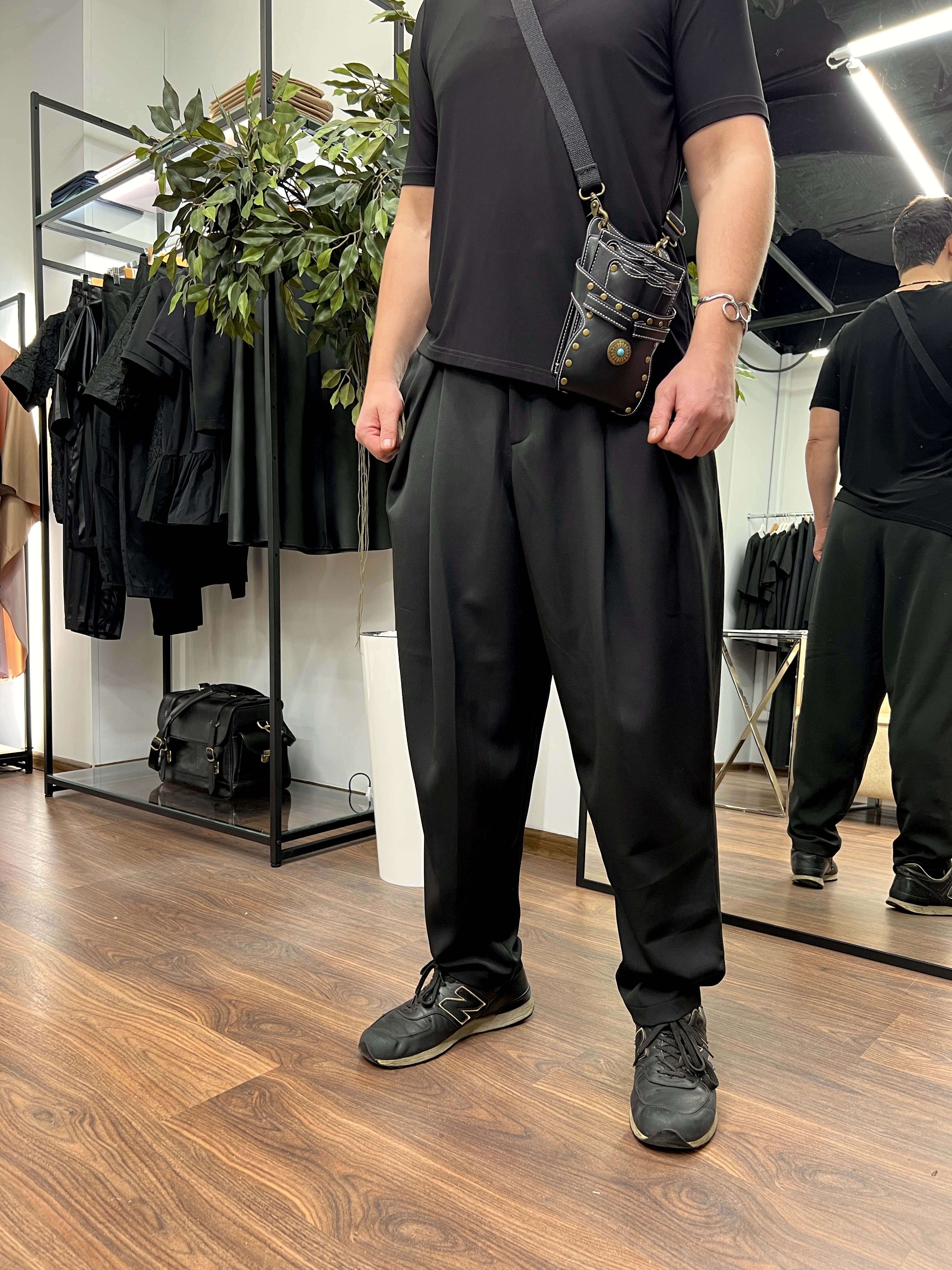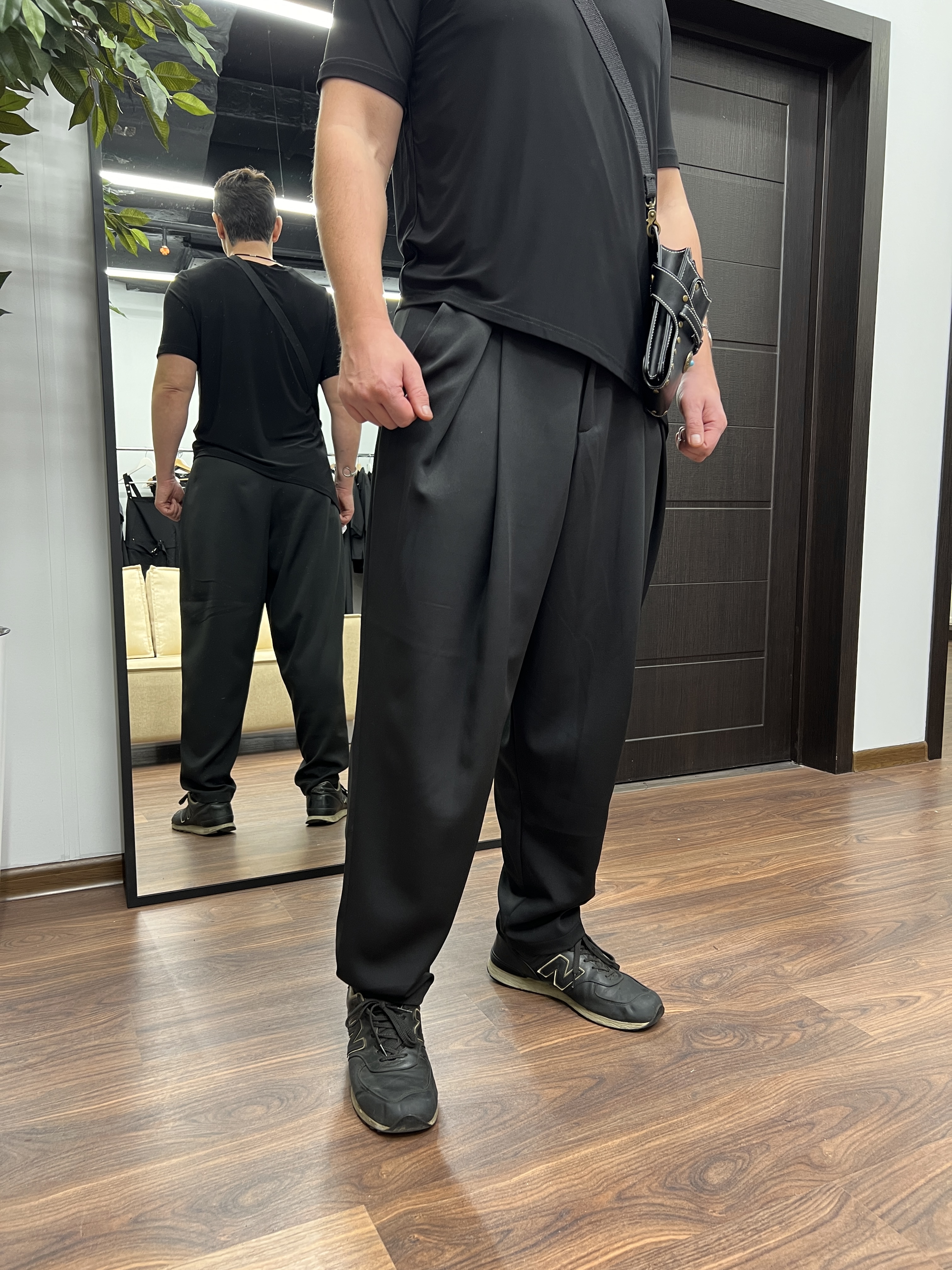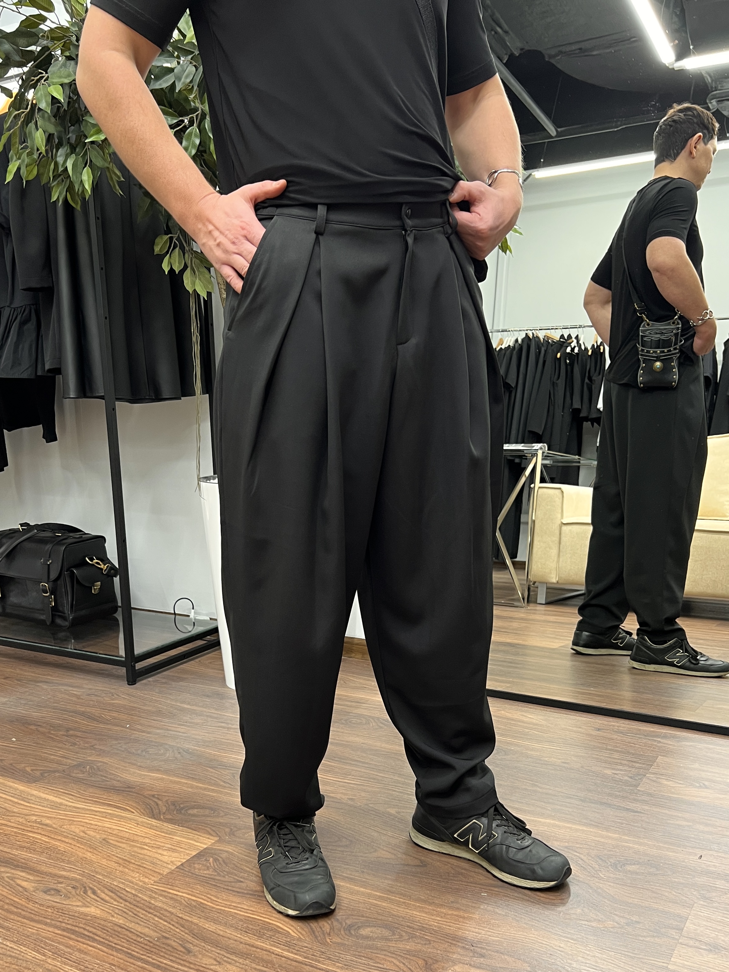 Брюки бананы свободного кроя мужские для парикмахера из костюмной ткани, которая НЕ окрашивается и НЕ осветляется.