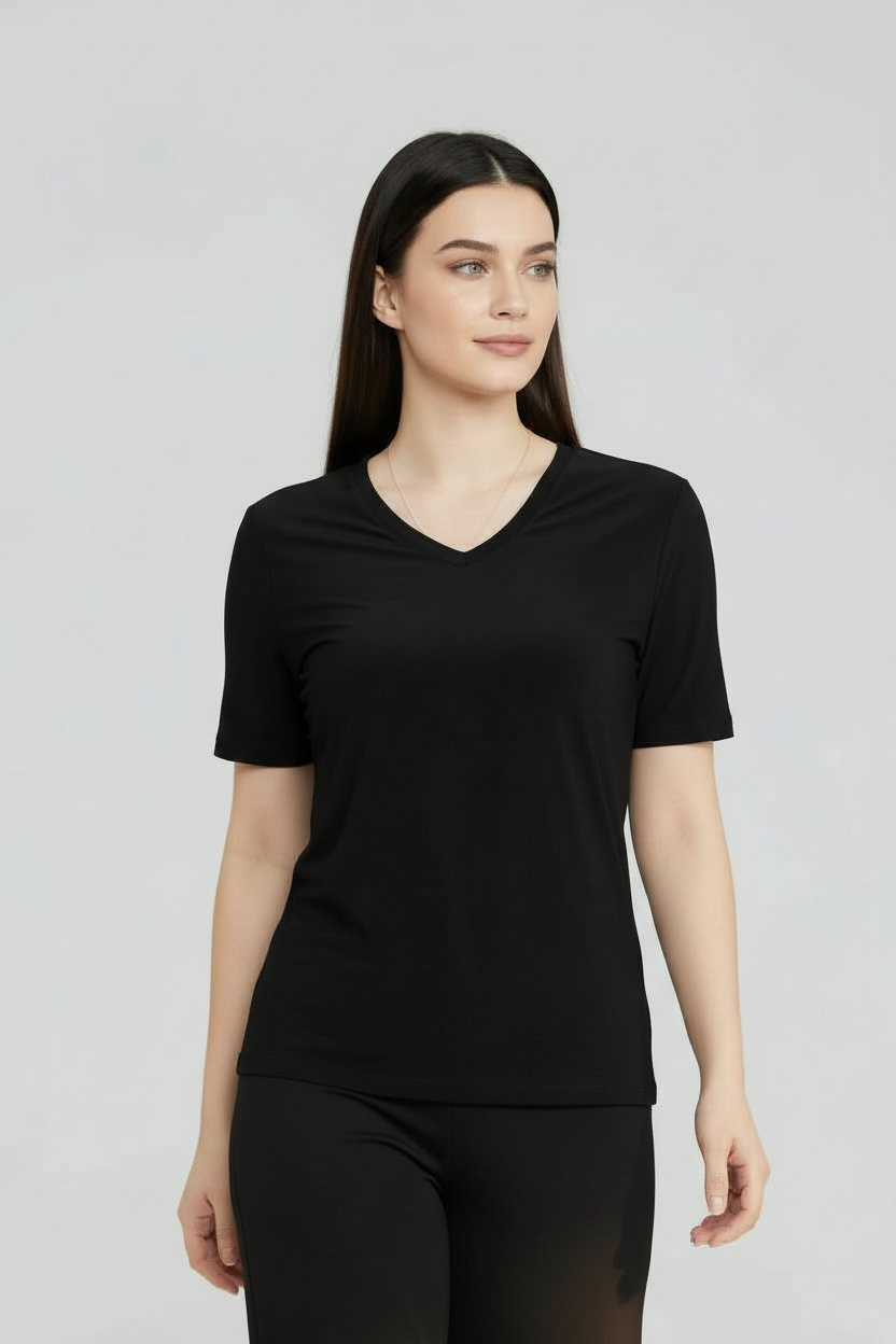 Футболка ВИОЛА для парикмахера, прилегающего силуэта с рукавом 3/4 и круглым вырезом.