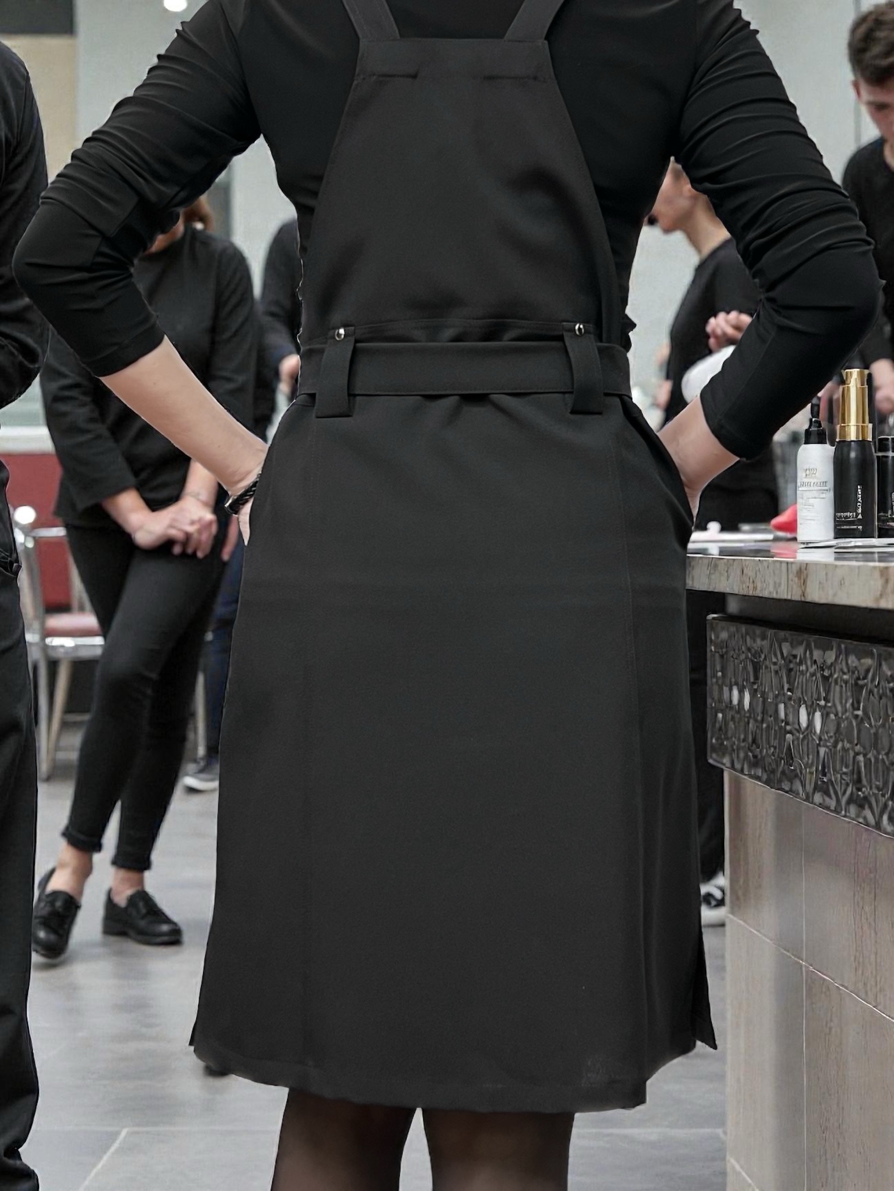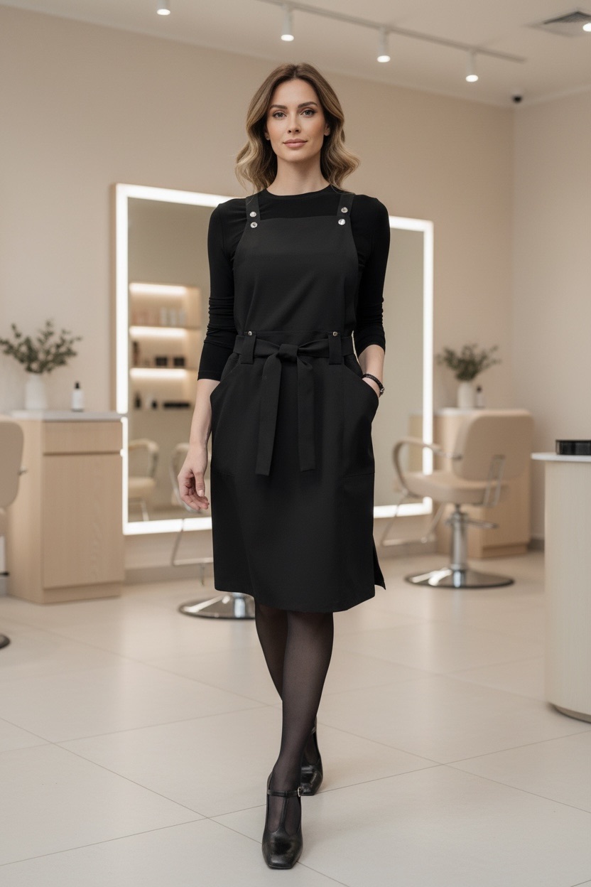 Полукомбинезон для парикмахера выполнен из костюмной ткани, которая не окрашивается и не осветляется!